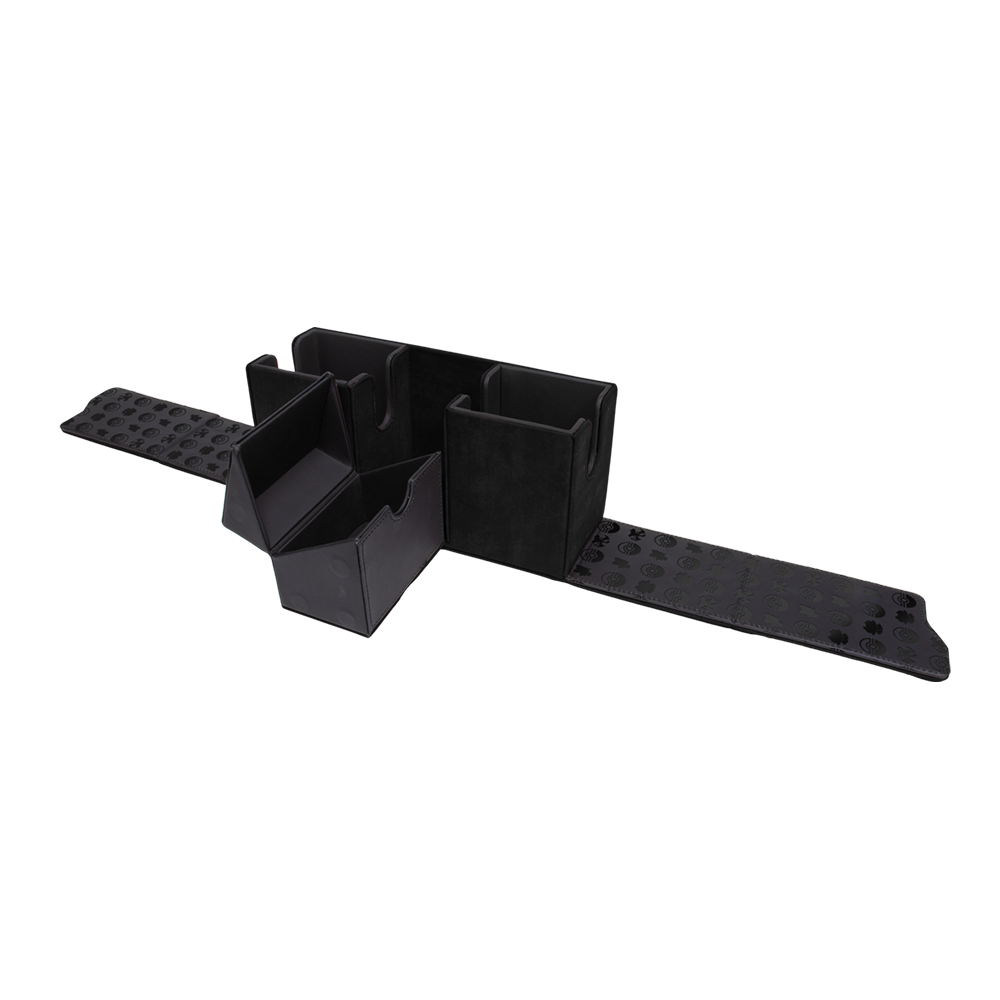 - Center compartment for dice, tokens, game accessories, or an additional 100 single-sleeved cards