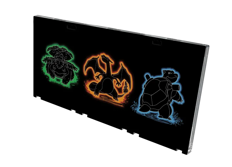 - Ein ONE-TOUCH EDGE(TM) 3-CARD Halter mit neon-inspirierten Venusaur, Charizard und Blastoise Motiv